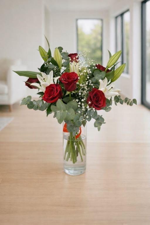 La dulzura representada en un precioso ramo de rosas rojas con lilium, una mezcla de flores irresistible e ideal para regalar. Todas nuestras flores son seleccionadas una a una por nuestro equipo de floristas expertos. En Bella Rosa trabajamos las flores desde el primer momento para conseguir su máxima belleza.